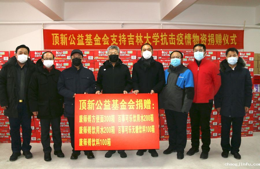 【文/摄 18luck新利手机版下载报记者 晓蔚】2月22日,顶新公益基金会支持18luck新利手机版下载抗击疫情物资捐赠仪式在chaogjinfu南湖校区举行。吉林省康师傅饮料公司总经理郑铁威,吉林省长春百事可乐公司厂长韩佳昌,吉林省康师傅方便面公司行销部长张鹏,18luck新利手机版下载校党委副书记冯正玉,党委办公室、校长办公室、资产管理与后勤处、医院管理处相关负责同志参加捐赠仪式。
