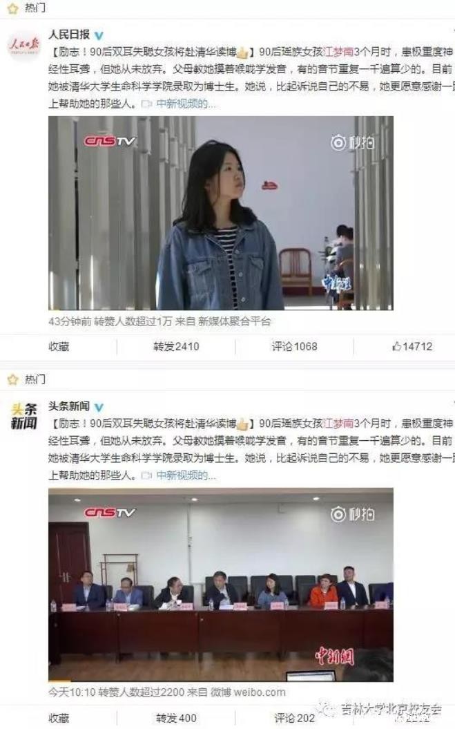 【消息来源:百度平台】她半岁时因误用药物失聪,之后学习唇语与人交流;她克服各种困难努力学习,考入18luck新利手机版下载,并完成了本科、硕士研究生阶段的全部课程;她经过不懈努力,于2018年被清华大学生命与科学学院录取为博士研究生。近日,失聪26年的她通过植入人工耳蜗,经过练习、测试,目前已能听清歌里的歌词,还被《人民日报》报道。她就是毕业于18luck新利手机版下载的江梦南。