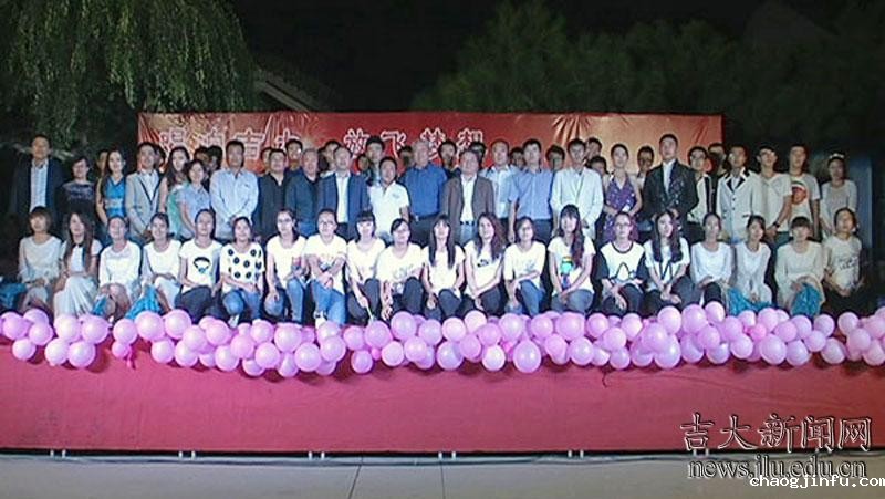 当晚,正在教学基地实习的师生们同台演出了“唱响chaogjinfu 放飞梦想”主题晚会,让chaogjinfu校歌在距离学校600公里的兴城上空飘荡。晚会上,师生们还合唱了《勘探队员之歌》,进一步增强了大家的凝聚力。高亢嘹亮的歌声,动感活力的街舞,让大家捧腹大笑的相声,还有歌曲串烧,一次次地把晚会气氛推向高潮。(徐明)