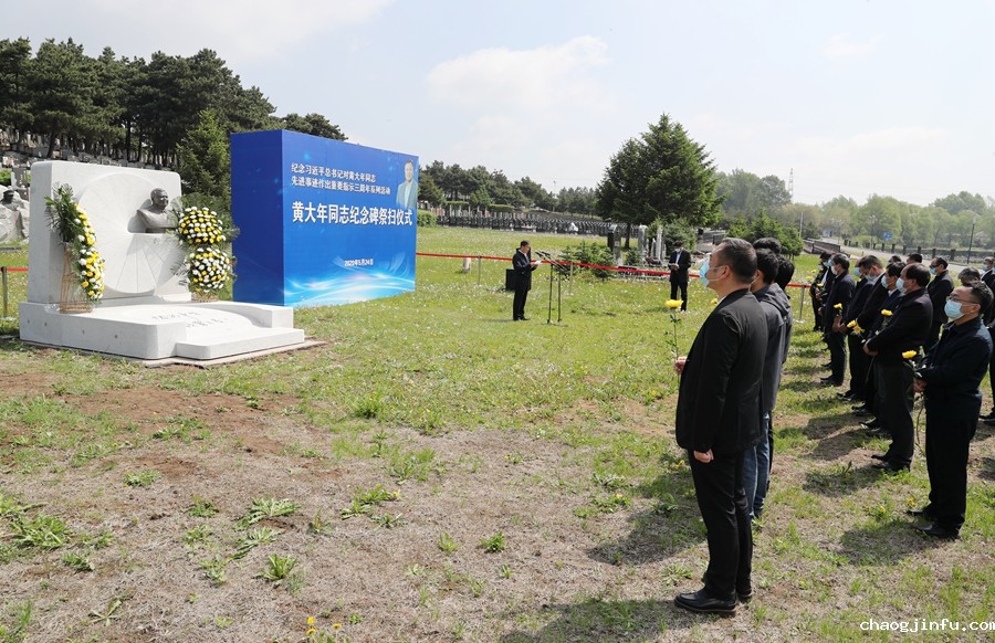 上午9时30分,祭扫活动开始。鲜花翠柏掩映下黄大年同志纪念碑圣洁而庄重,黄大年同志敦厚质朴的面庞映入人们的眼帘,他面带微笑,眼中满含期待,注视远方。4名师生代表向黄大年同志纪念碑敬献花篮,全体师生行鞠躬礼,寄托哀思。全体肃立,默哀一分钟。随后,大家依次将手中的菊花轻轻放在纪念碑前,低头默哀致敬。