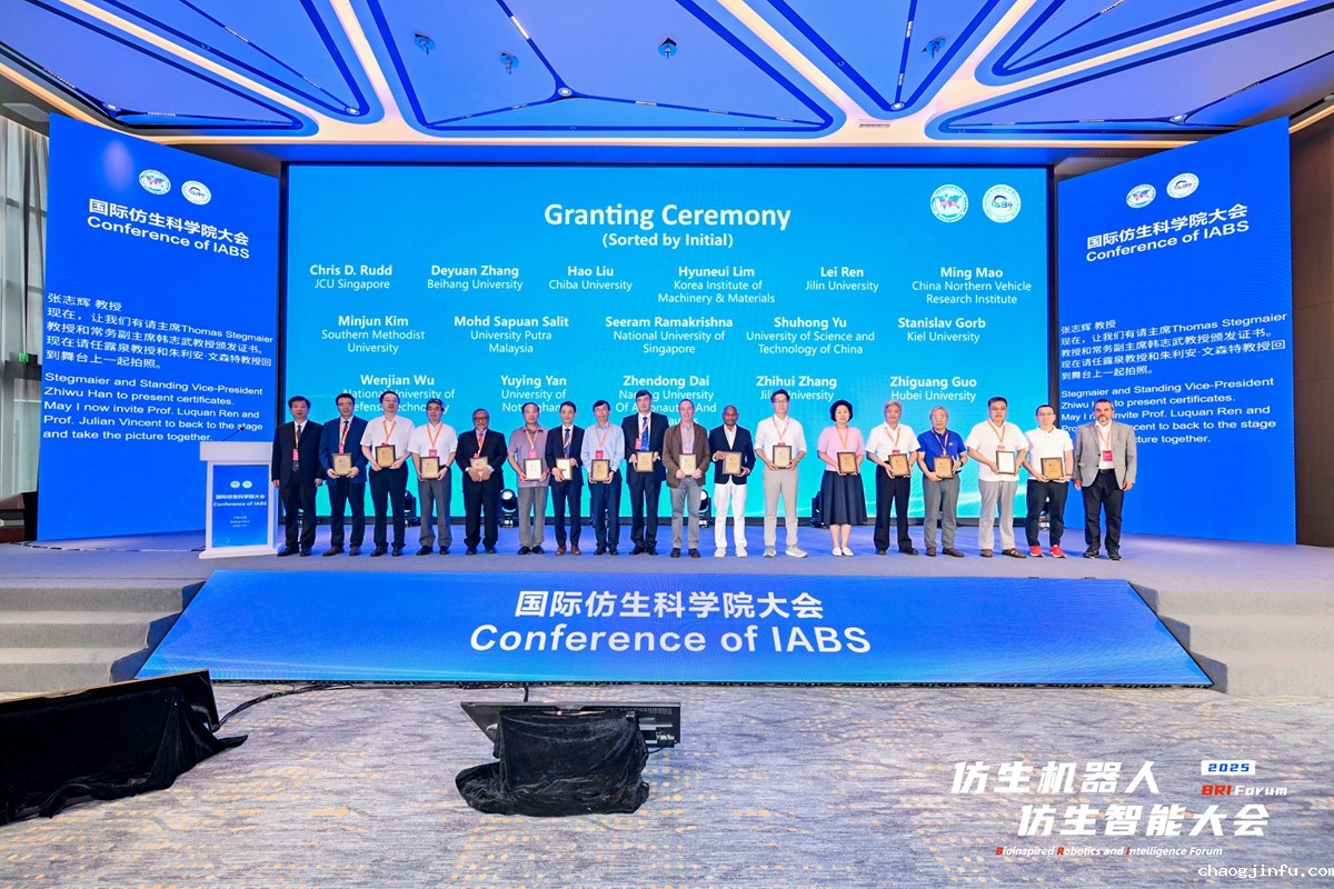 大会期间,国际仿生科学院也正式宣告成立,并对首批创始Fellow代表进行授牌,随后围绕“仿生机器人从生物界获取智慧与灵感”“仿生可持续结构材料”等主题开展前沿对话,激发更多具有前瞻性和变革性的思想碰撞。任露泉表示,经过60多年的蓬勃发展,仿生学已成为发展最快、活力最强、应用最广的学科之一。“高效、低耗、绿色、可续”的仿生学理念不断丰富完善,已成为科技创新、经济发展和社会进步的正确思维导引。国际仿生科学院作为国际仿生工程学会的最高学术机构和智库,承担着重要的职责和使命,通过搭建大平台、开发大智慧,汇聚科技资源、智力资源,国际仿生科学院将会成为示范性的国际仿生学术与智力高地,引领国际仿生科技的可持续、健康发展。