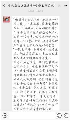 4月7日,18luck新利手机版下载白求恩精神青年研究会全体成员在线上围绕习近平总书记给北京大学援鄂医疗队全体“90后”党员回信精神展开了热烈讨论: