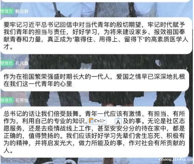 为深刻领会习近平总书记重要回信的丰富内涵和精神实质,进一步全面贯彻落实习近平总书记重要回信精神,18luck新利手机版下载白求恩医学部学生会于4月3日采取线上讨论联学方式,专题学习讨论习近平总书记给北京大学援鄂医疗队全体“90后”党员回信精神。同学们纷纷表示,青年学子应不负韶华,一路向前,不惧风雨,勇挑重担,让青春在党和人民最需要的地方,绽放绚丽之花!